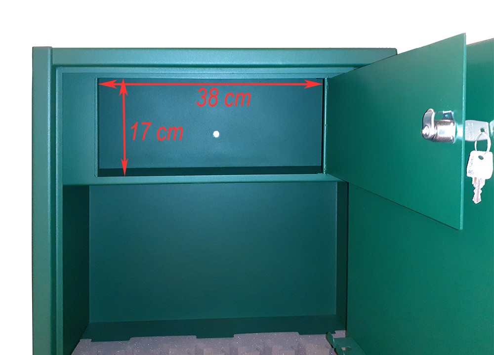 Zár: minősített széfzár, 2 db kulccsal (opcionálisan elektronikus zárral is rendelhető)